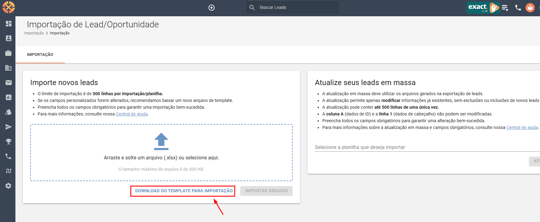 Se você possui uma lista de leads/oportunidades e deseja importar para o Exact Spotter, basta seguir os passos abaixo: