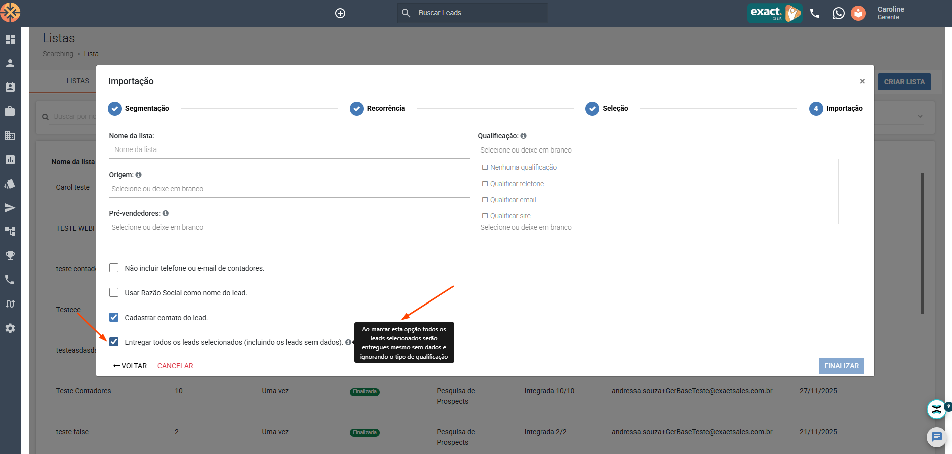 Você também poderá selecionar para que todos os leads selecionados sejam entregues.
