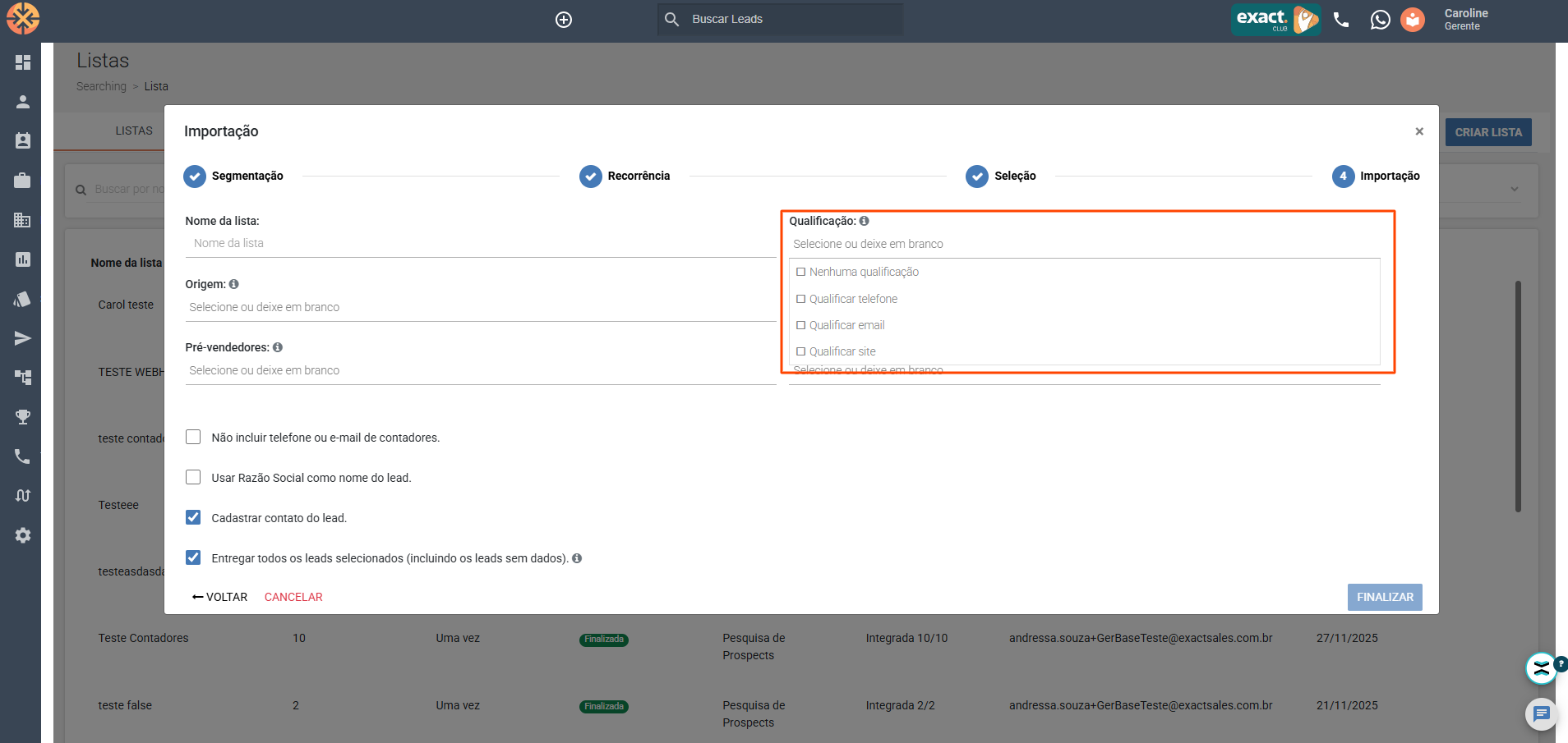 - Qualificar telefone: Selecionando a qualificação por telefone, o robô do Exact Spotter validará a existência dos mesmos através de análises.