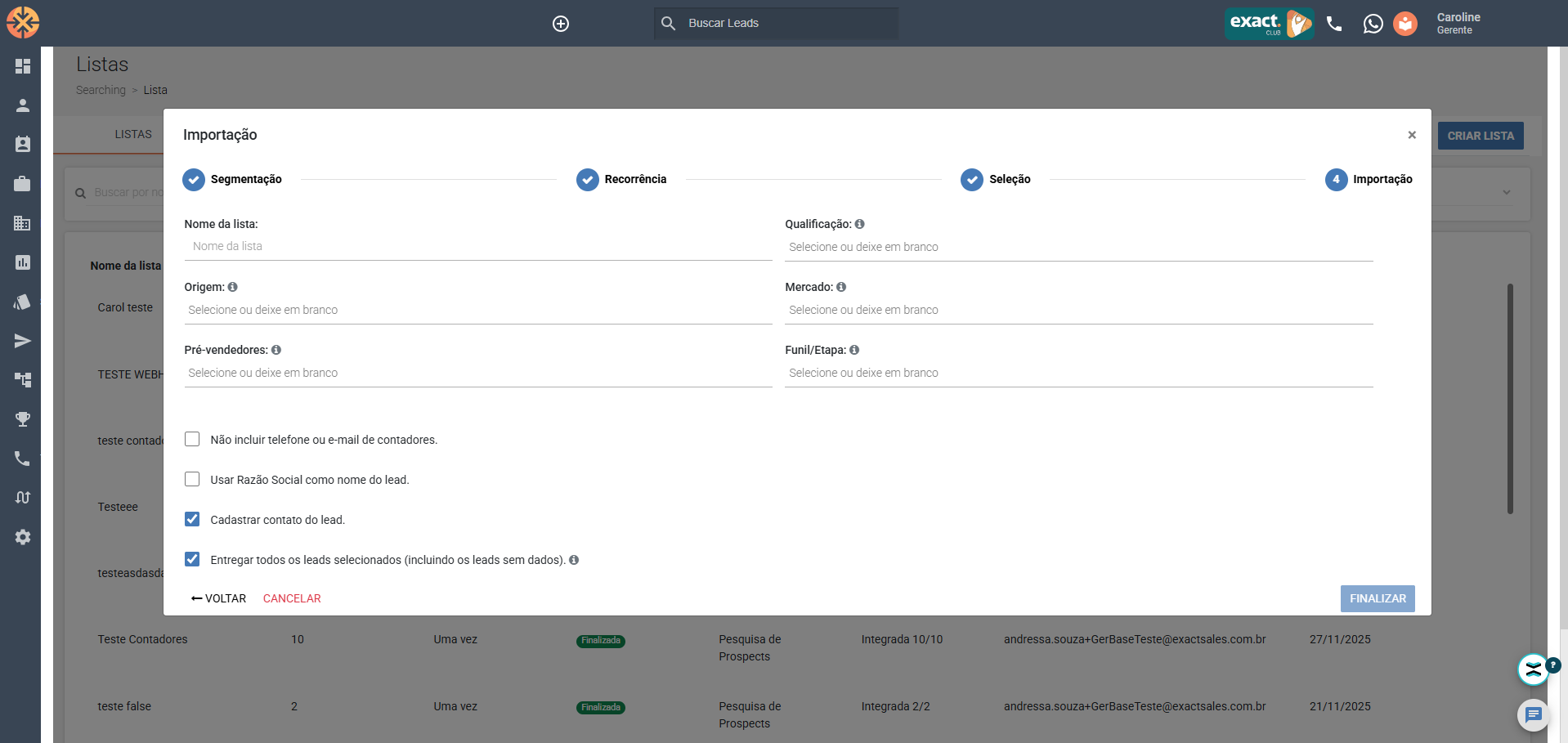 Agora, ao concluir a criação da lista, o recurso de compartilhamento se chama Importar e acontece automaticamente. Isso mesmo, não é necessário acessar a lista para enviar os leads para o funil (enviado para o funil padrão, por enquanto).