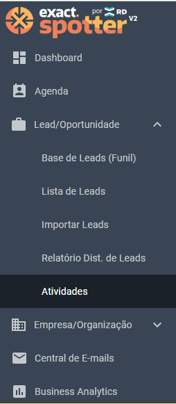 Passo 1: acesse a tela de Atividades no menu lateral do Spotter