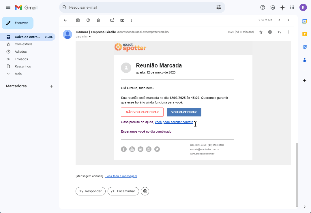 Pelo e-mail, é possível confirmar, cancelar ou solicitar contato com apenas um clique.