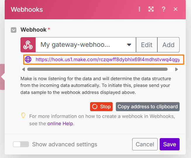 Acesse a ferramenta e ative um link para recebimento a partir de Webhook: