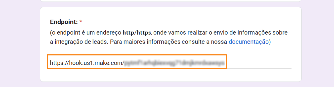 O campo Endpoint precisa ser preenchido com o link gerado acima, os outros campos serão de acordo com suas informações
