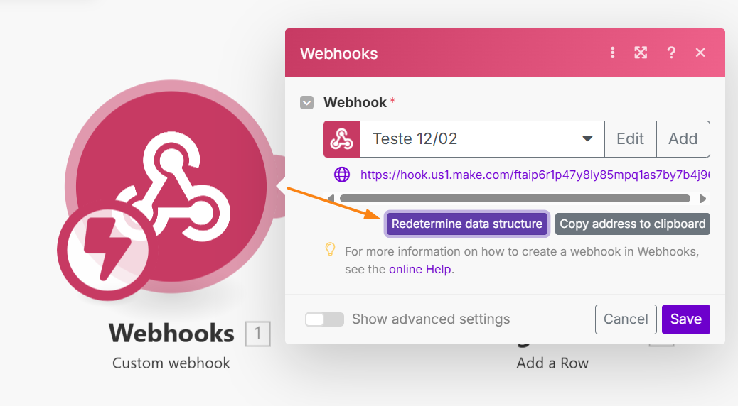 Acessar novamente o weebhoook que configuramos e ativar o fluxo, ele ficará assim