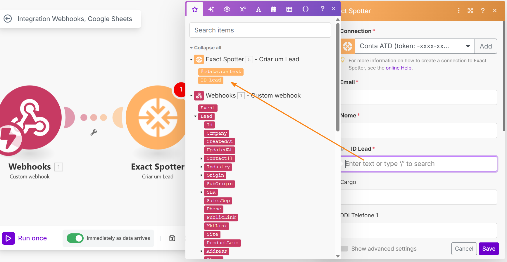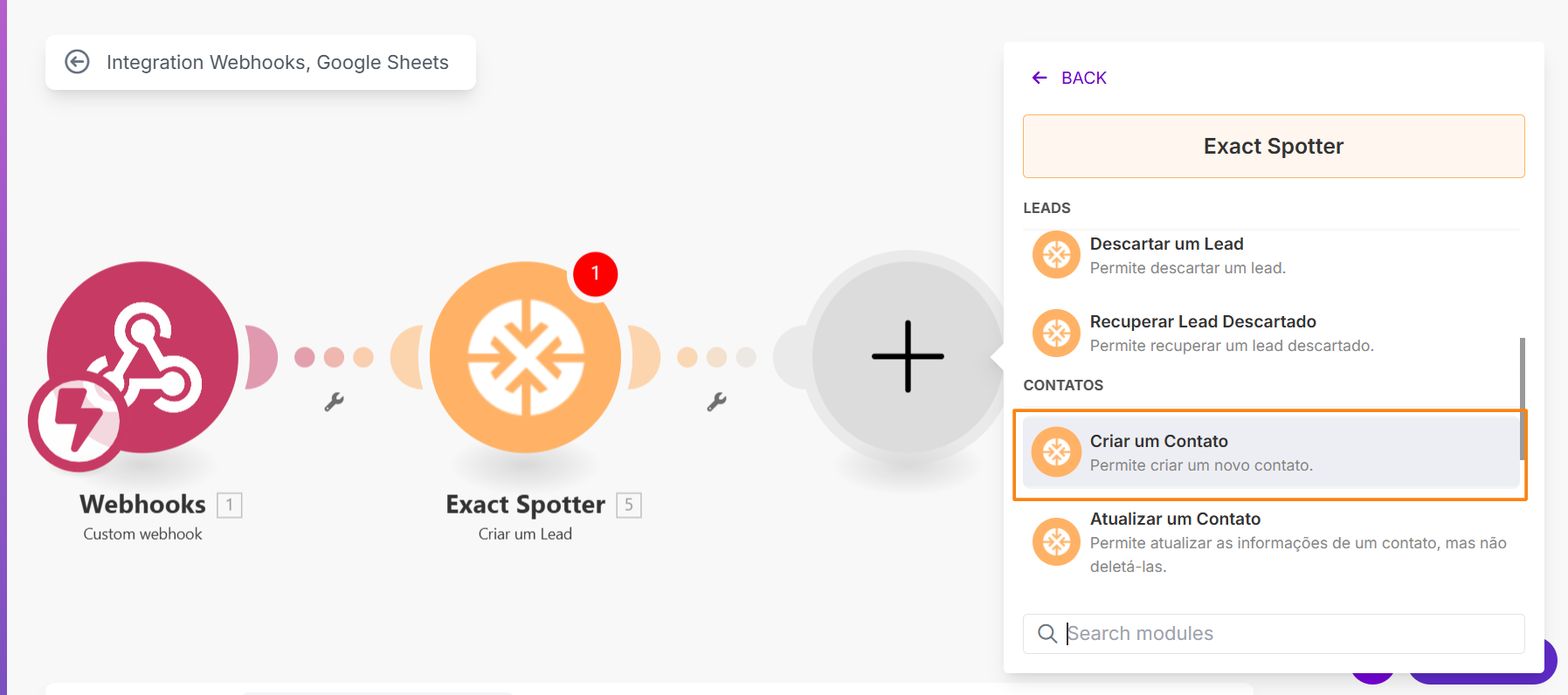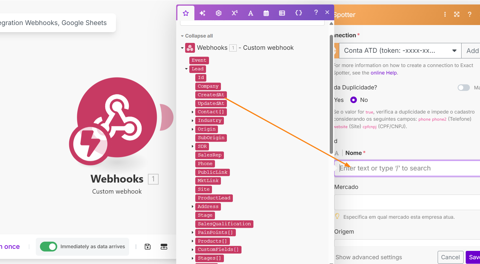 Ultimo passo será enviar o lead para o Spotter e vincular as informações com os campos que precisa na ferramenta