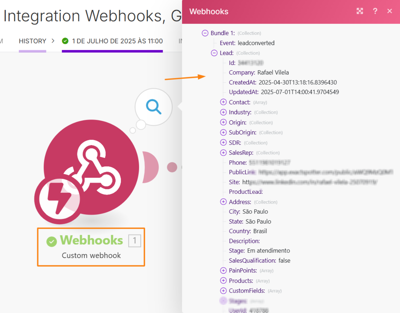 Com ele rodando você deve enviar o primeiro Lead de teste, o retorno será esse: