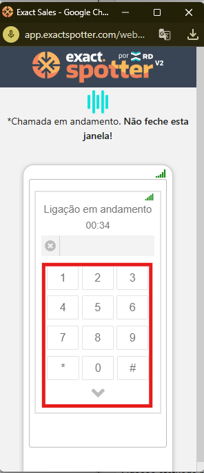 O Webphone exibirá a opção de utilizar o teclado numérico