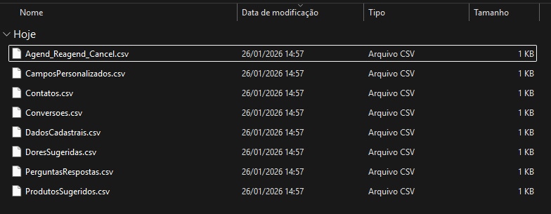 Dentro desses arquivos contém algumas informações, aqui está o conteúdo presente em cada arquivo de exportação: