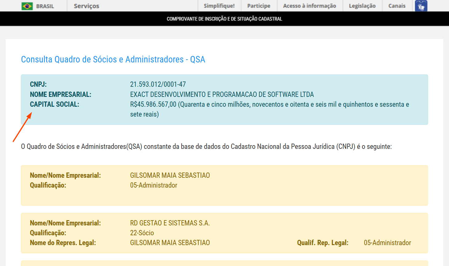 Para acessar a tela onde o Capital Social aparece zerado, basta clicar conforme indicado no print abaixo.