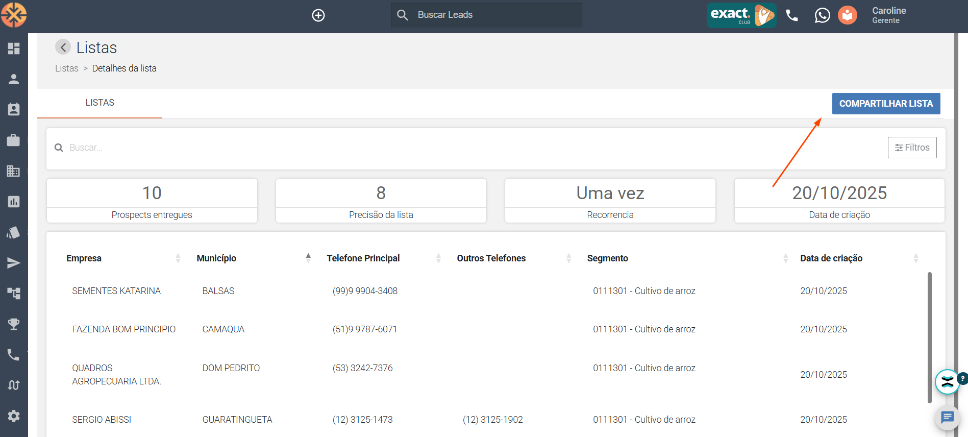 Significa que a lista já foi compartilhada e os leads estão disponíveis no funil.